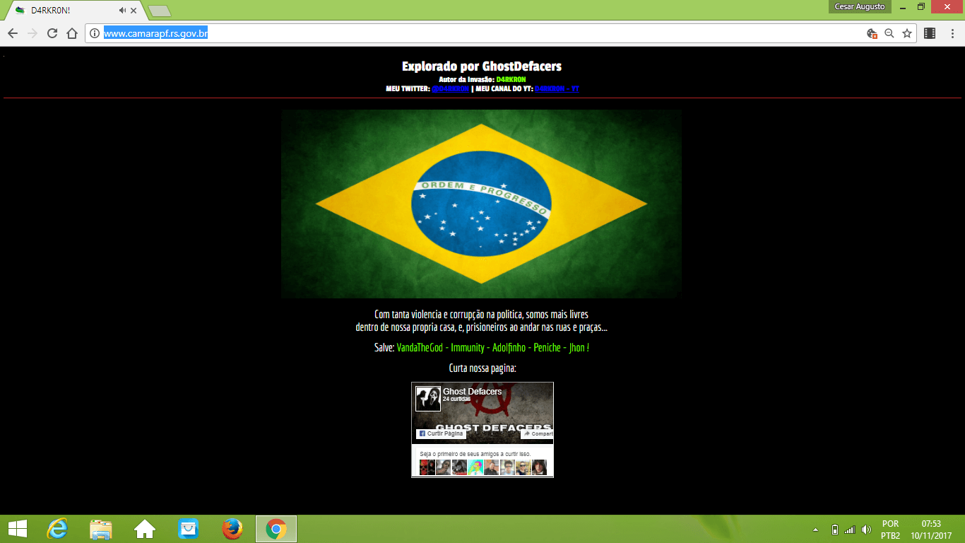 Até o momento, o site segue invadido. Pelo que consta, trata-se de protesto por conta dos escândalos de corrupção e violência que assolam o país.