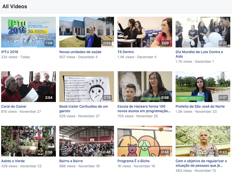 Vídeos mais recentes da Prefeitura no Facebook: nada de aeroporto.