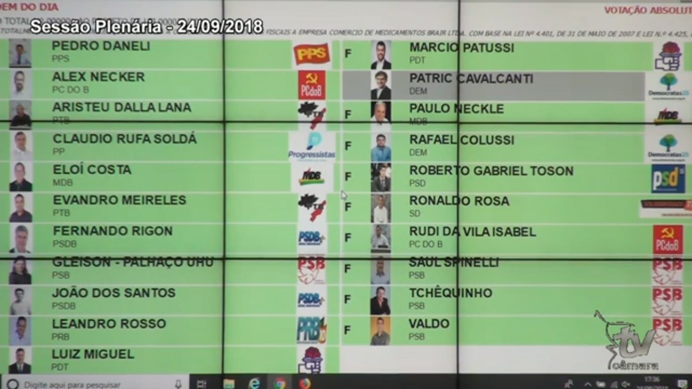 Aprovado VETO TOTAL Nº 01 AO PROJETO DE LEI 032/2018. A proposição encaminhada pelo Executivo, na qual rege a concessão de incentivos fiscais para a empresa Comércio de Medicamentos BrairLtda (Farmácias São João). O texto previa a isenção do Imposto Predial e Territorial Urbano (IPTU) do Centro de Distribuição da empresa por um período de sete anos.