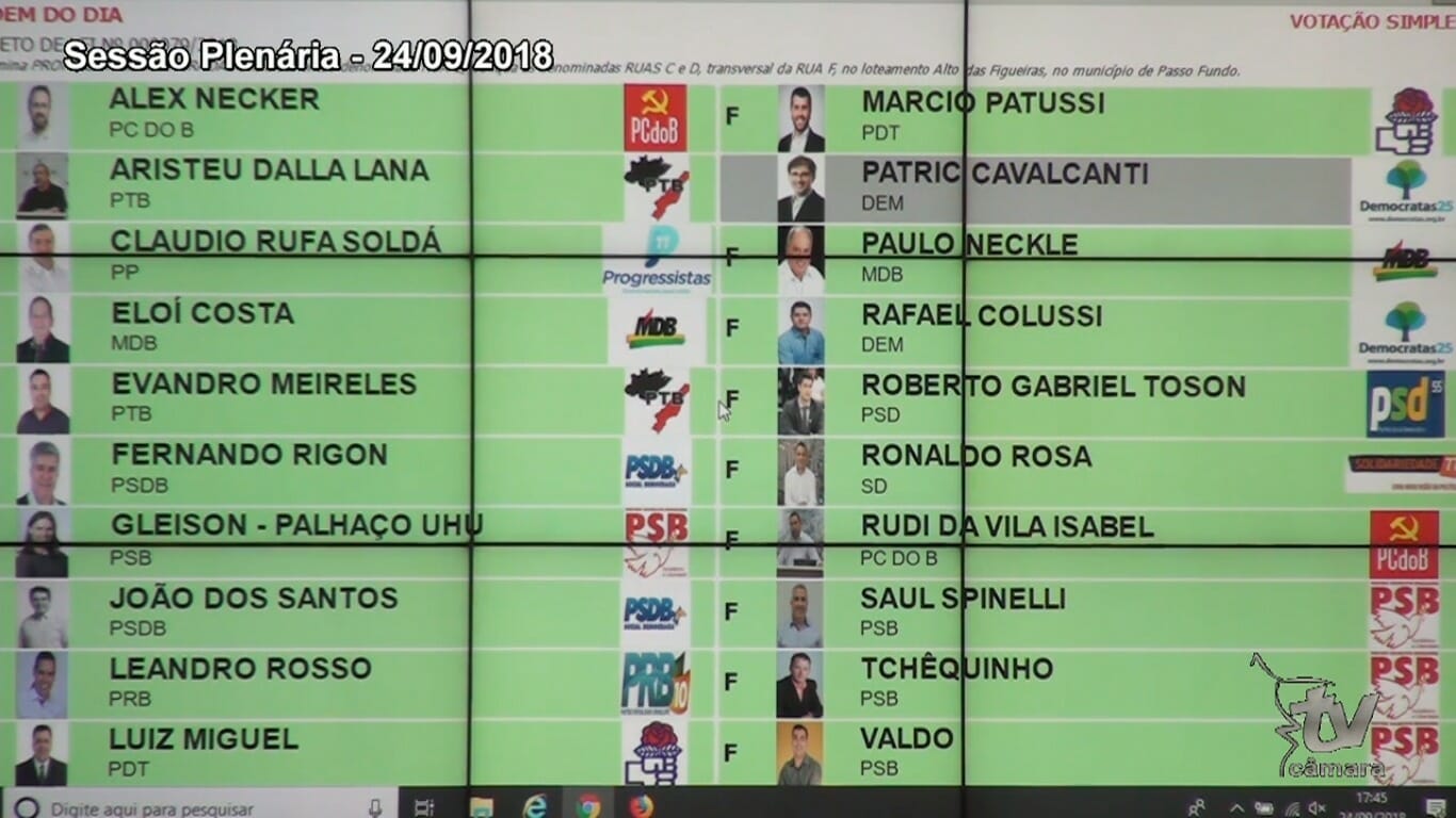Aprovado o PROJETO DE LEI Nº 000079/2018, do gabinete do vereador Mateus Wesp, que denomina PROFESSOR SÉRGIO GRADASCHI a até então denominada RUA E, oblíqua às denominadas RUAS C e D, transversal da RUA F, no loteamento Alto das Figueiras, no município de Passo Fundo.