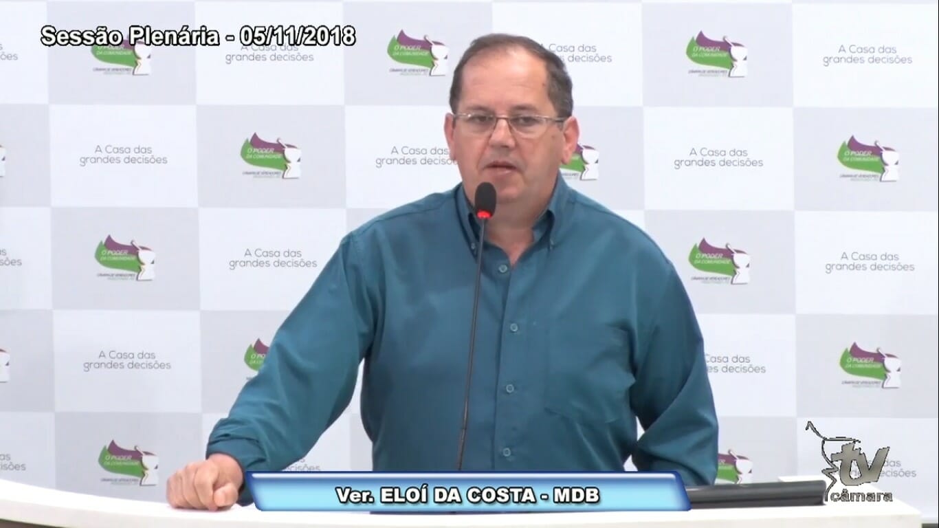 Eloí abordou reunião que vereadores realizaram na sua casa sobre a composição da Mesa Diretora da Câmara de Vereadores para os anos de 2019 e 2020. Conforme relato do vereador, Fernando Rigon será o presidente no ano de 2019 e Saul Spinelli em 2010.