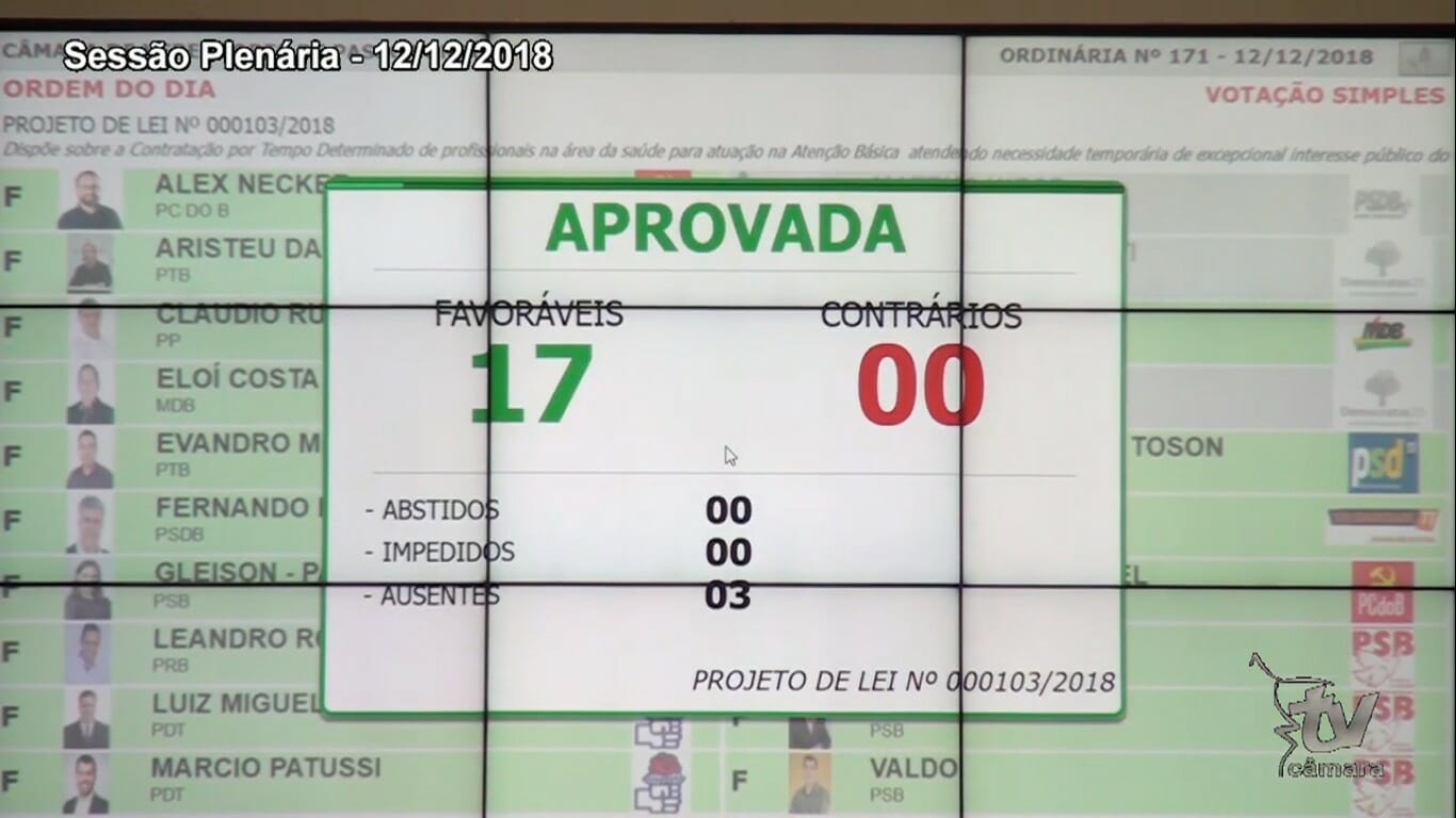 Aprovado o PL 103/2018, de autoria do Poder Executivo Municipal, que dispõe sobre a Contratação por Tempo Determinado de profissionais na área da saúde para atuação na Atenção Básica atendendo necessidade temporária de excepcional interesse público do município de Passo Fundo nos termos do inciso IX, do art. 37 da Constituição Federal.