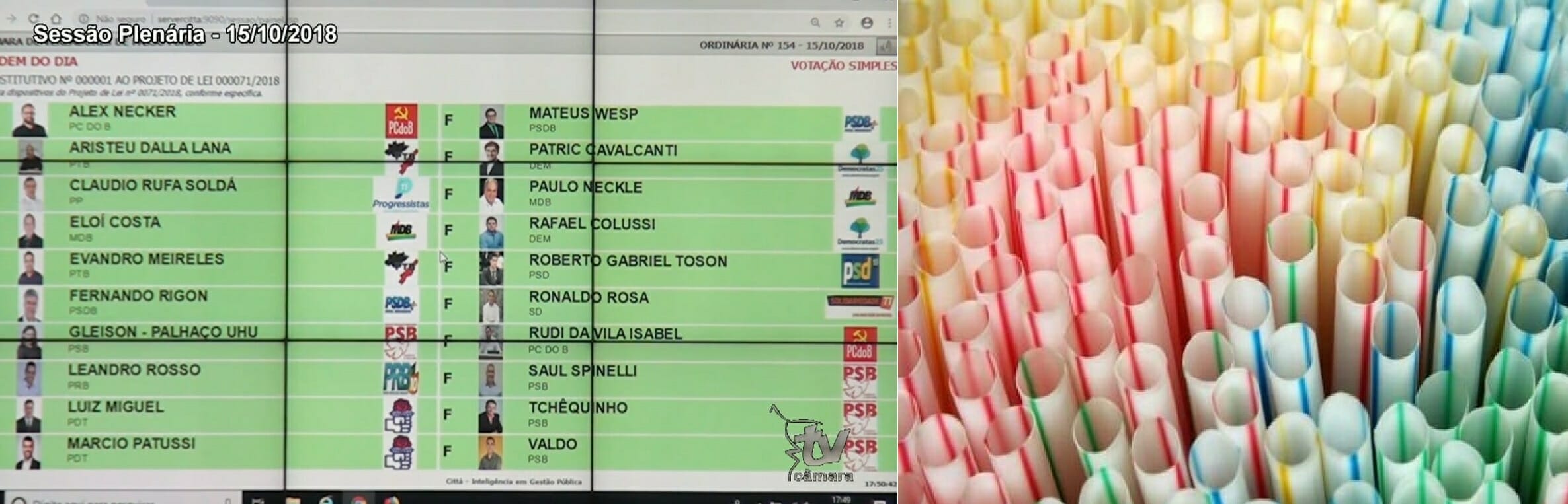 Foi aprovado, em Passo Fundo, ainda no ano passado, o Substitutivo ao PL 071/2018, que dispõe sobre a obrigatoriedade do fornecimento de canudos de papel biodegradável e/ou reciclável, individual e hermeticamente embalados com material semelhante. A lei é de autoria do vereador Alex Necker (PCdoB). O Projeto foi votado durante a Sessão Plenária de 15/10/2018 (veja a votação abaixo):