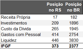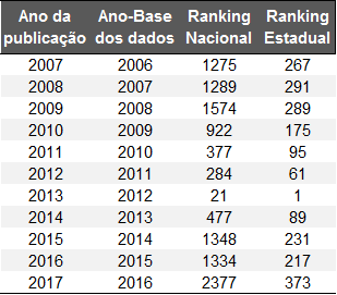 O quadro abaixo compara a posição de Passo Fundo nos rankings estadual e nacional entre 2007 e 2017, lembrando que nem todos as cidades são contempladas pelo estudo – no Rio Grande do Sul, por exemplo, são 485, de um total de 497.