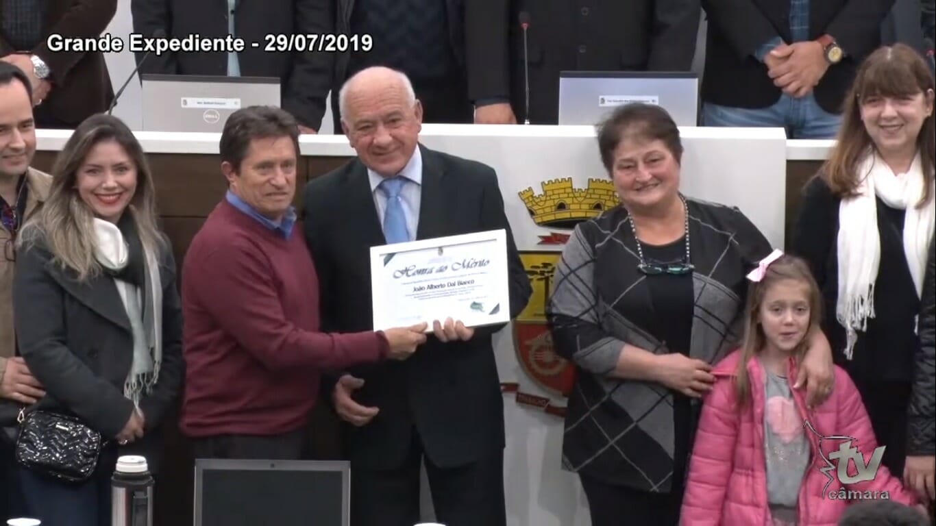 Ao homenagear o estofador João Alberto Dal Bianco (imagem), do ramo de estofaria há mais de 47 anos, que sempre trabalhou pelo desenvolvimento do comércio local, gerando muitos empregos na cidade.