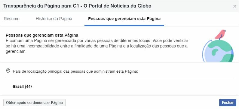 Mas o estrago interno foi maior. Através da opção “transparência da página”, ferramenta fornecida pelo próprio Facebook e aberta para todos os usuários, no dia 7 de setembro era possível verificar que a página G1 – O Portal de Notícias da Globo tinha 44 editores ou administradores. Hoje, o canal conta com 35. Nove pessoas perderam o acesso e não podem mais postar em nome da empresa.