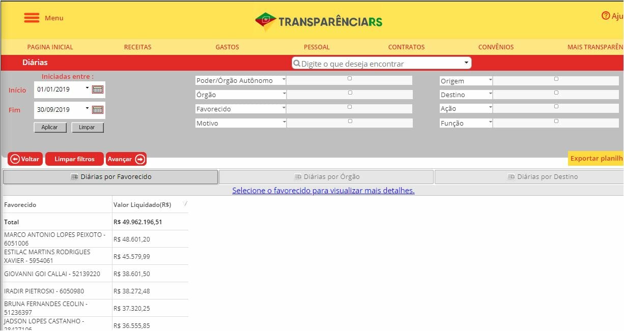 A seguir, o detalhamento dos gastos com dados do portal da Transparência RS, dos 3 primeiros colocados no ranking.