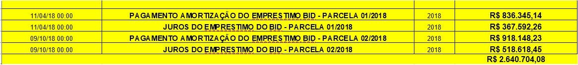 O site da Transparência não informa com clareza os pagamentos em outros anos (constam valores compatíveis com o contrato, mas sem descrição). Por conta desta falta de qualidade na informação pública, vamos destacar apenas 2018. É uma dívida que deverá ser paga até 2035, por contrato.
