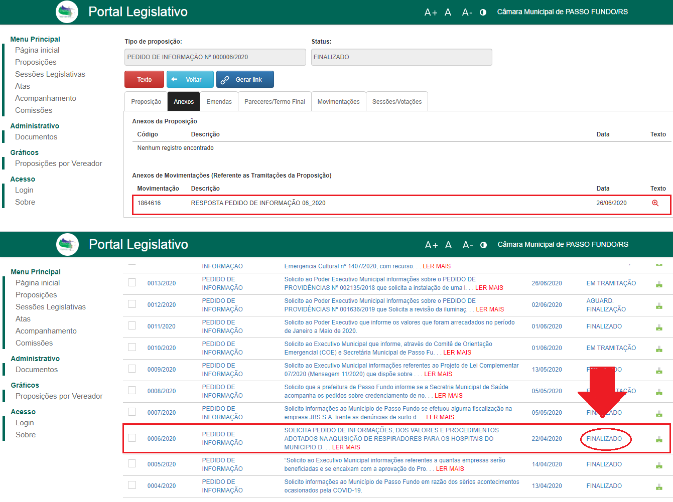 Ainda, informou que há aproximadamente 60 dias, solicitou ao Poder Executivo as notas fiscais da aquisição dos respiradores, mas que não houve retorno. Entretanto, a resposta ao Pedido de Informação 06/2020 foi respondida ainda no dia 26/06/2020 (RESPOSTA PEDIDO DE INFORMAÇÃO 06_2020):