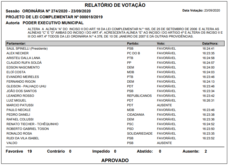 A seguir, os destaques da Sessão Plenária desta quarta-feira (23), na Câmara de Vereadores de Passo Fundo