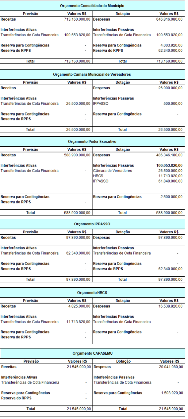A Tabela a seguir ilustra a estimativa da situação orçamentária e financeira de forma consolidada do município de Passo Fundo para o exercício de 2021: