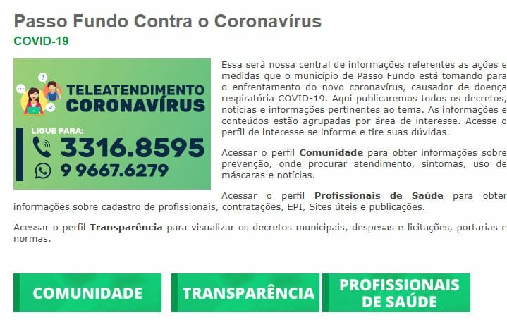 No passar dos dias de confinamento, a Prefeitura lançou uma espécie de Portal da Transparência dedicado aos gastos com a pandemia do coronavírus em Passo Fundo, também noticiado no site da Lócus. Novos dados da Transparência mostravam a aquisição de suprimentos hospitalares, dados confusos e dinheiro diretamente na mão de CCs para compras de materiais.