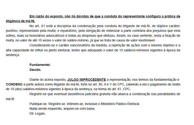 Foi proferida decisão pelo Colegiado do TRE RS para manter parcialmente a decisão que condenou o PSB por litigância de má-fé. Houve redução da multa de 10 para 5 salários mínimos. Confira o documento neste link.