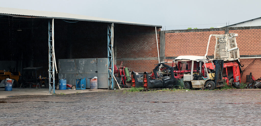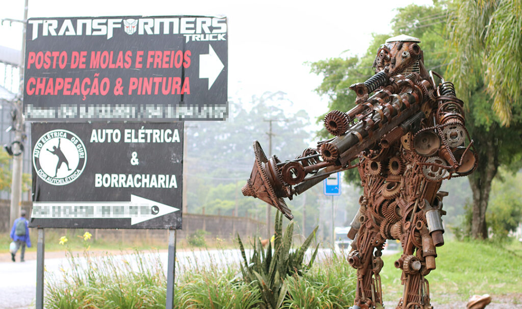 A entrada da oficina do artesão Jorge Grigolo e seu Transformer.