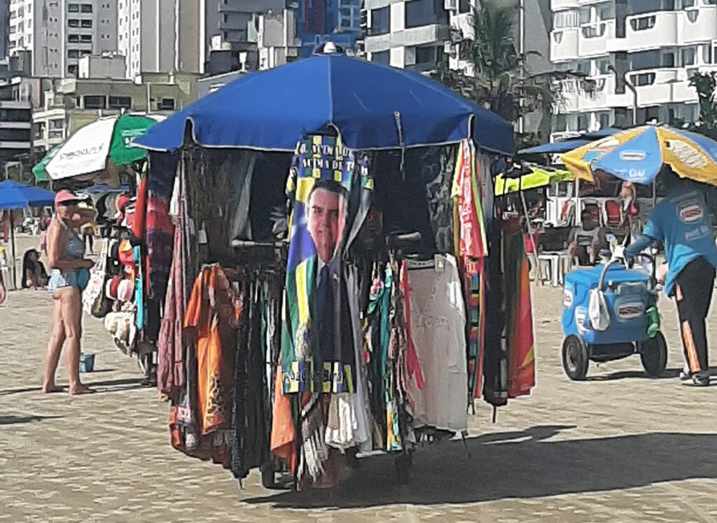 Bolsonaro verde e amarelo: a cor atribuída ao presidente do Brasil ganhou até as praias do país em forma de toalhas.